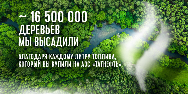 Благодаря акции «Лес от АЗС» ежегодно на территории Республики Татарстан высаживаются миллионы деревьев, которые благоприятно влияют на экологию региона. В общей сложности в 2013-2024 гг. рознично-сбытовые предприятия Компании «Татнефть» посадили около 16,5 млн саженцев на площади 10 000 га, вырос целый лес от сети АЗС «Татнефть»!