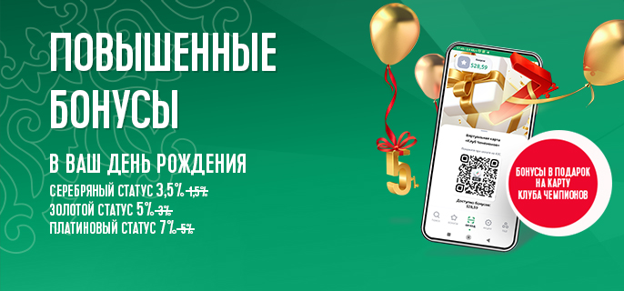Получите в день рождения приятный подарок от сети АЗС «Татнефть» на карту программы лояльности «Клуб Чемпионов».